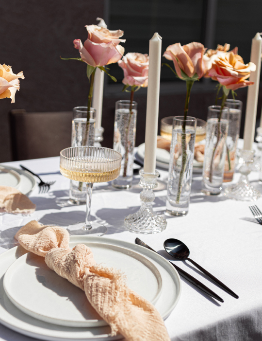 At Rent4.Party, we believe that every event deserves beautiful, high-quality decor without the hassle and cost of ownership. Our curated rental inventory includes vases, candle holders, dinnerware, glassware, flatware, satin and linen napkins, tables, and chairs — all professionally cleaned and inspected before each rental.